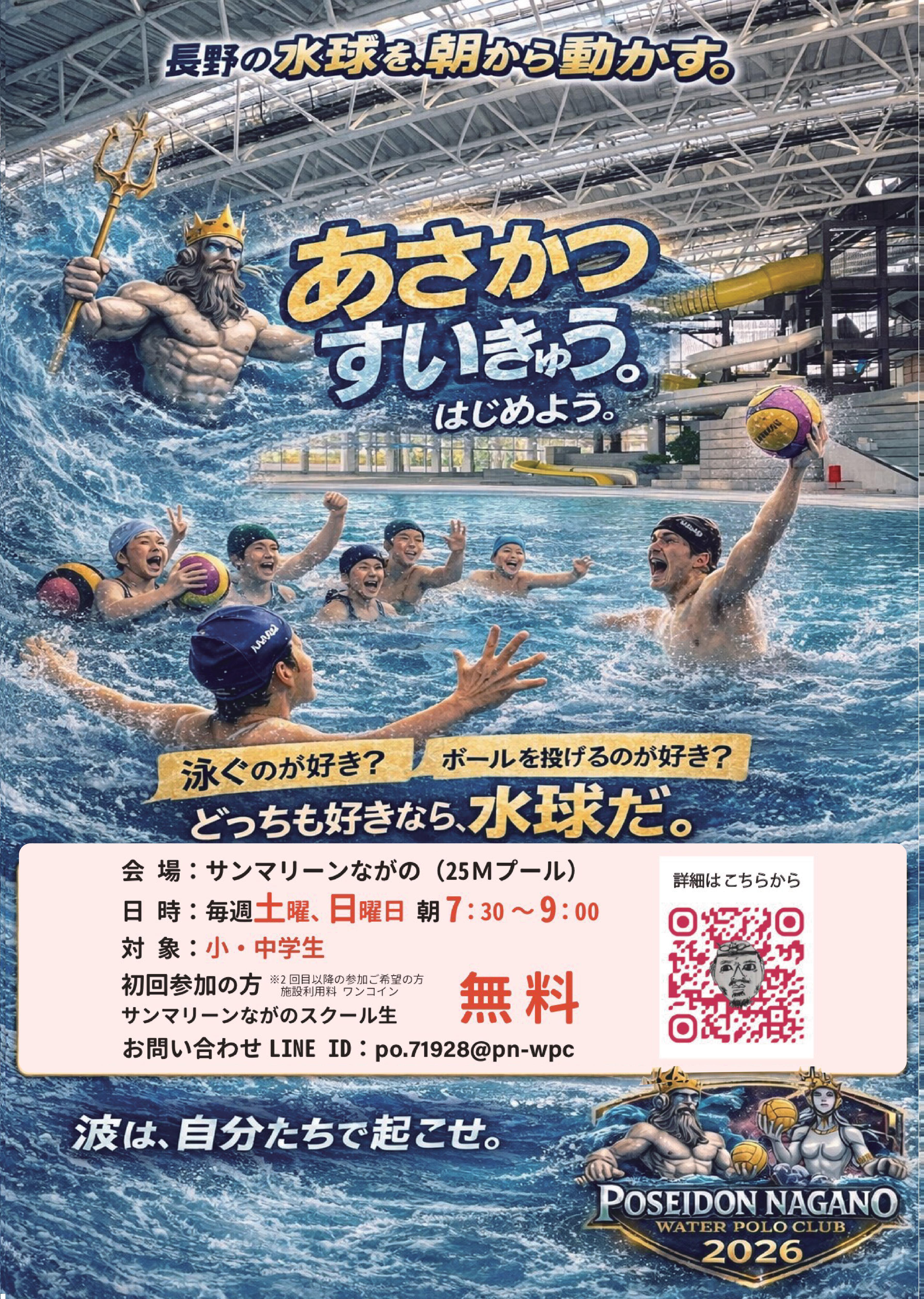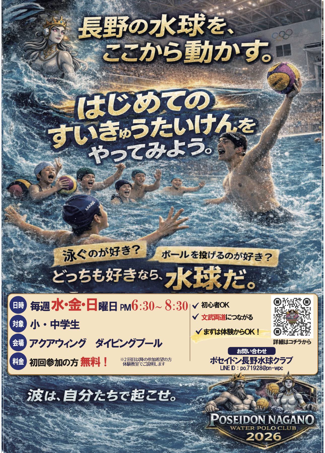 選手がスキル向上に専念できる環境を整備し、より高いレベルで活躍できる選手を育成します。これにより、水球競技の人口増加と地位向上を支援します。また、大会の企画・運営や普及活動を通じて、地域全体のスポーツ活動の活性化と健康増進に貢献します。